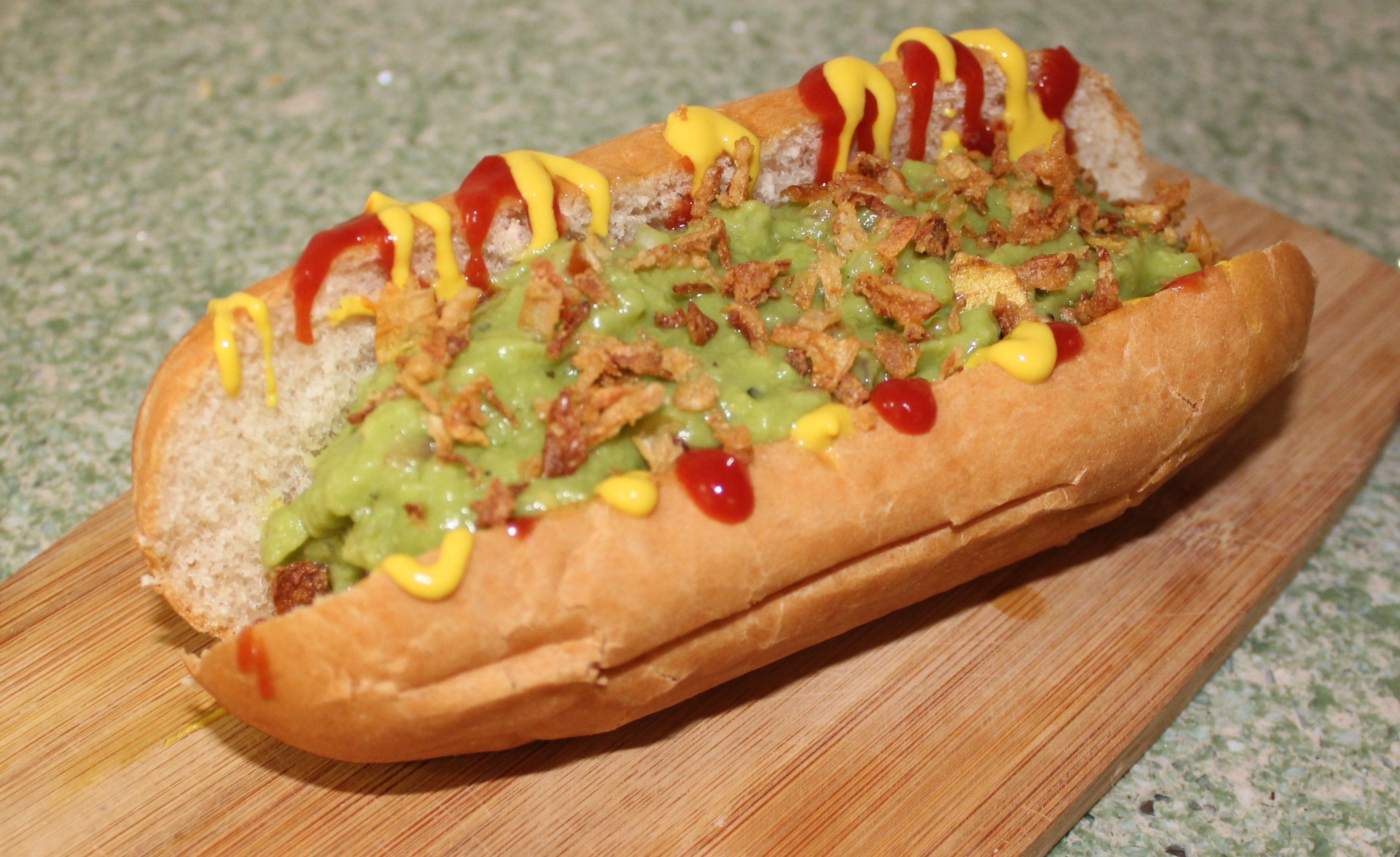 (Pan, Salchicha, Guacamole, Ketchup, Mostaza y Cebolla Crispy)