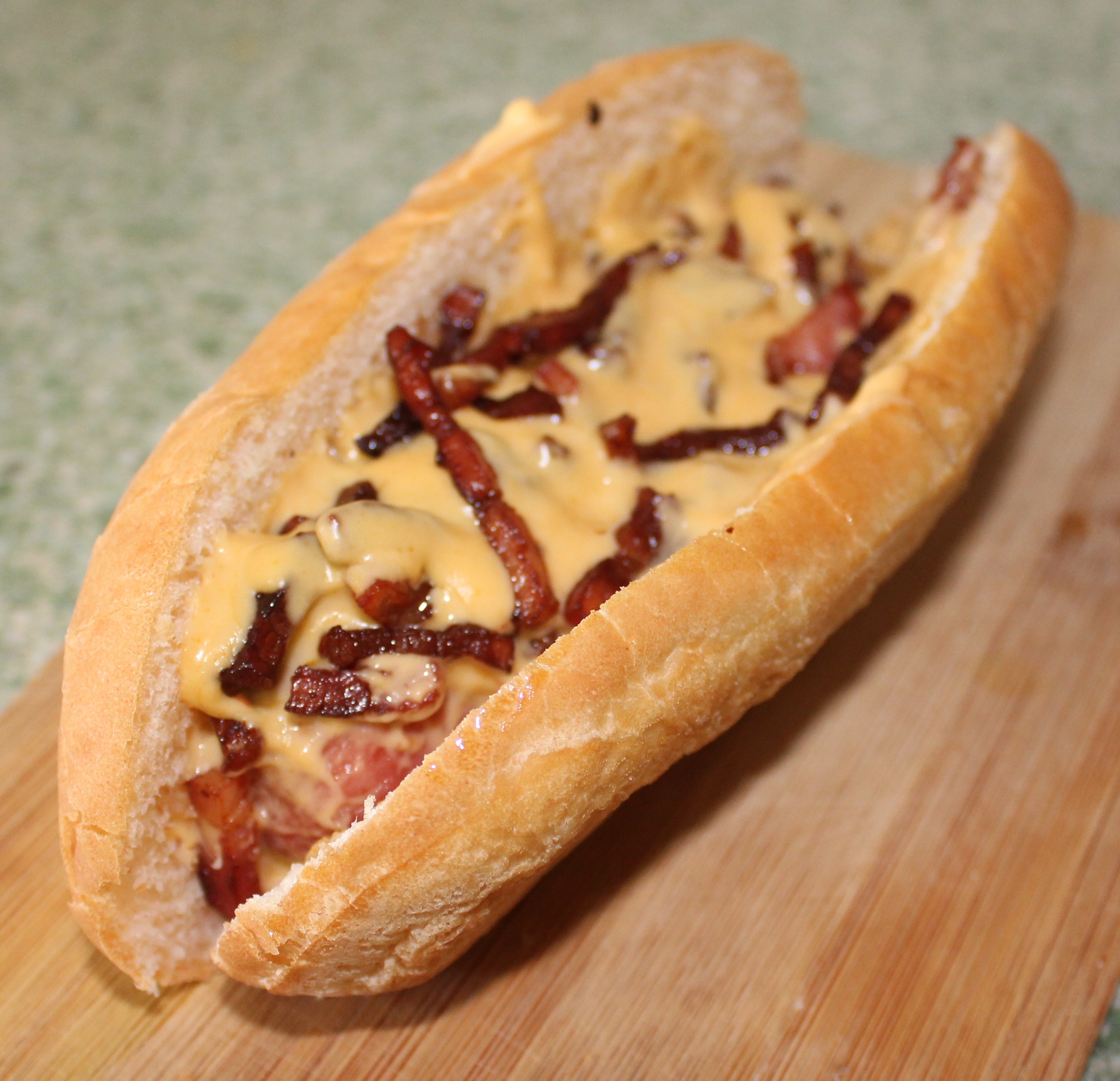 (Pan, Salchicha, Salsa 3 Quesos y Bacon)